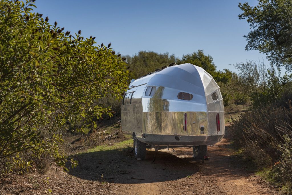 The Bowlus Rivet® epitomizes the rugged adventure camping that this country is known for. Freedom to camp anywhere is possible with this Bowlus. Over-specced power management systems with yacht-quality lithium and solar power generation allow indefinite time off-grid. A optioned three-inch lift kit for added off-road clearance with all-terrain tires supports off-road access. The Rivet is the first production RV to be self-propelled, self-powered, and remote-controlled, enabling you to access virtually any campsite.